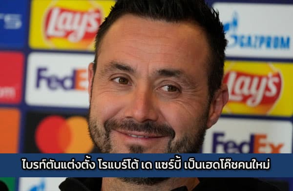 ไบรท์ตัน แอนด์ โฮฟ อัลเบี้ยน ทีมอันดับ 4 ในพรีเมียร์ลีกในขณะนี้ ประกาศแต่งตั้ง โรแบร์โต้ เด แซร์บี้ เป็นโค๊ชคนใหม่เรียบร้อยแล้วโดยจะได้รับสัญญา 4 ปี ไบรท์ตัน ประสบกับปัญหาไม่มี เฮดโค๊ชใน ขณะนี้